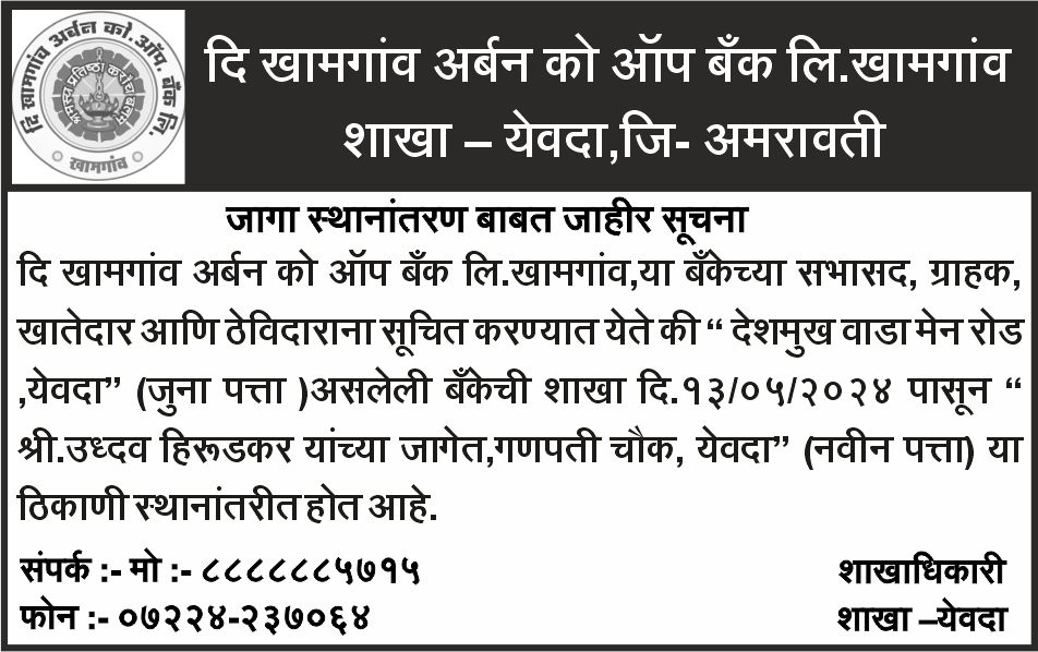भारतीय रिझर्व्ह बँकेने वेळोवेळी केलेल्या सूचनेनुसार बँकेला त्यांच्या ग्राहकांचा केवायसी (Know Your Customer) संबंधाने रेकॉर्ड वेळोवेळी अद्ययावत करणे बंधनकारक आहे. त्यामुळे बँकेच्या सर्व ग्राहकांना विनंती करण्यात येत आहे की, त्यांनी त्यांचे केवायसी (KYC) आणि प्रोफाईल् (Profile) अद्ययावत करण्याचे दृष्टीने त्यांच्या ओळखीचा पुरावा, पत्याच्या पुरावा (जसे आधार कार्ड, पासपोर्ट, पॅनकार्ड) व पासपोर्ट आकाराचा नवीनतम फोटो बँकेकडे त्वरित जमा करावा.